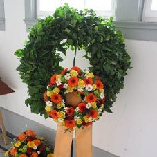 Die Symbolik des ewigen Lebens wird in der Kreisform des Kranzes unterstrichen. Mit Ihren persönlichen Wünschen für die Gestaltung verleiht er dem Hinterbliebenen Trost und Mitgefühl.